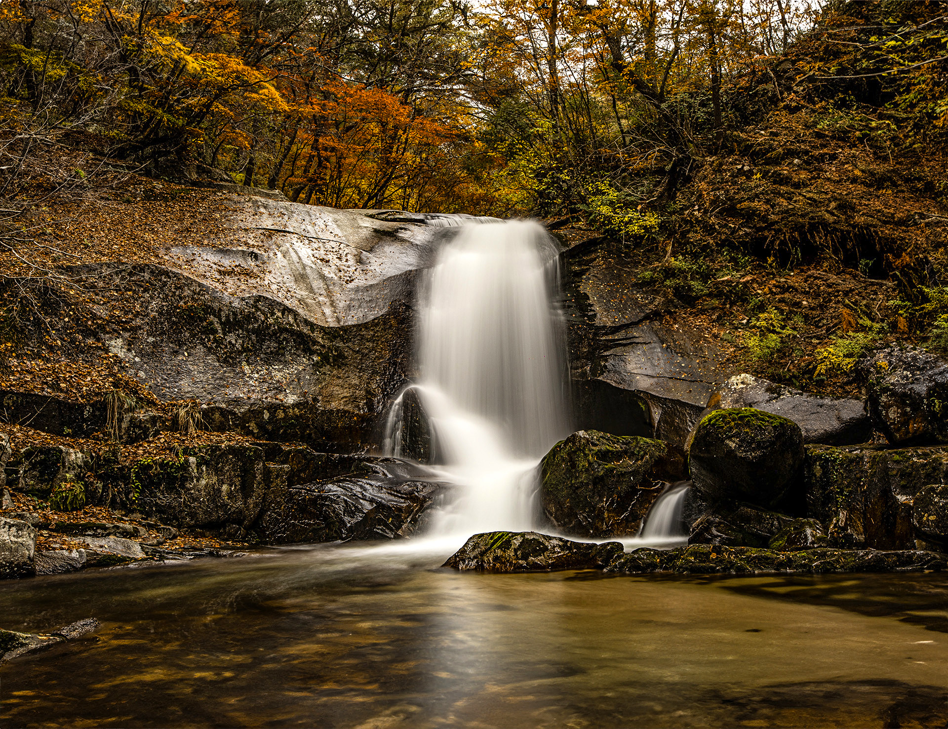 추색과 조화를 이룬 폭포가
