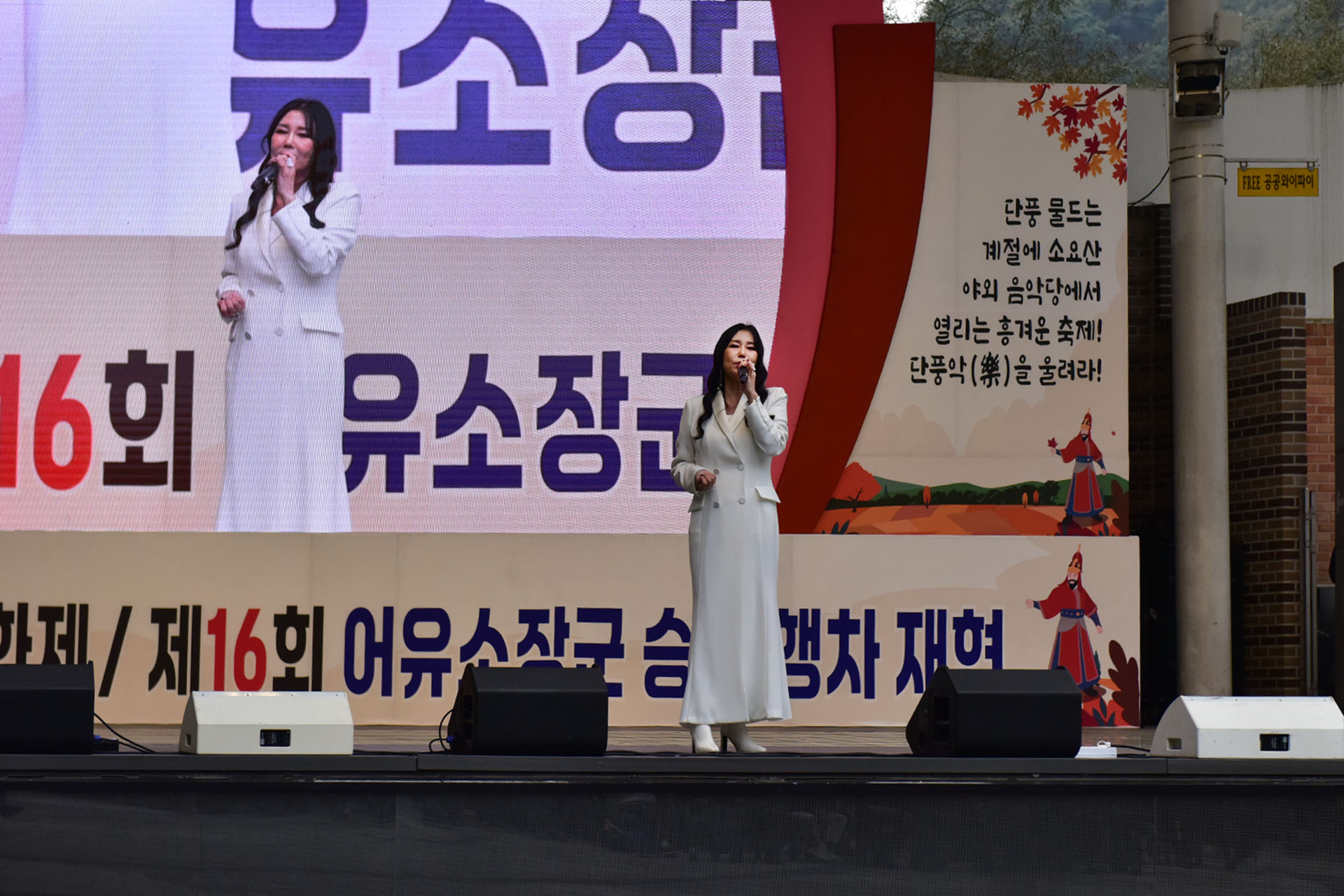 동두천 소요산 단풍축제 및 어유소장군 승전 행차 재현 축하행사장에서 가수 박미경 열창하는 모습