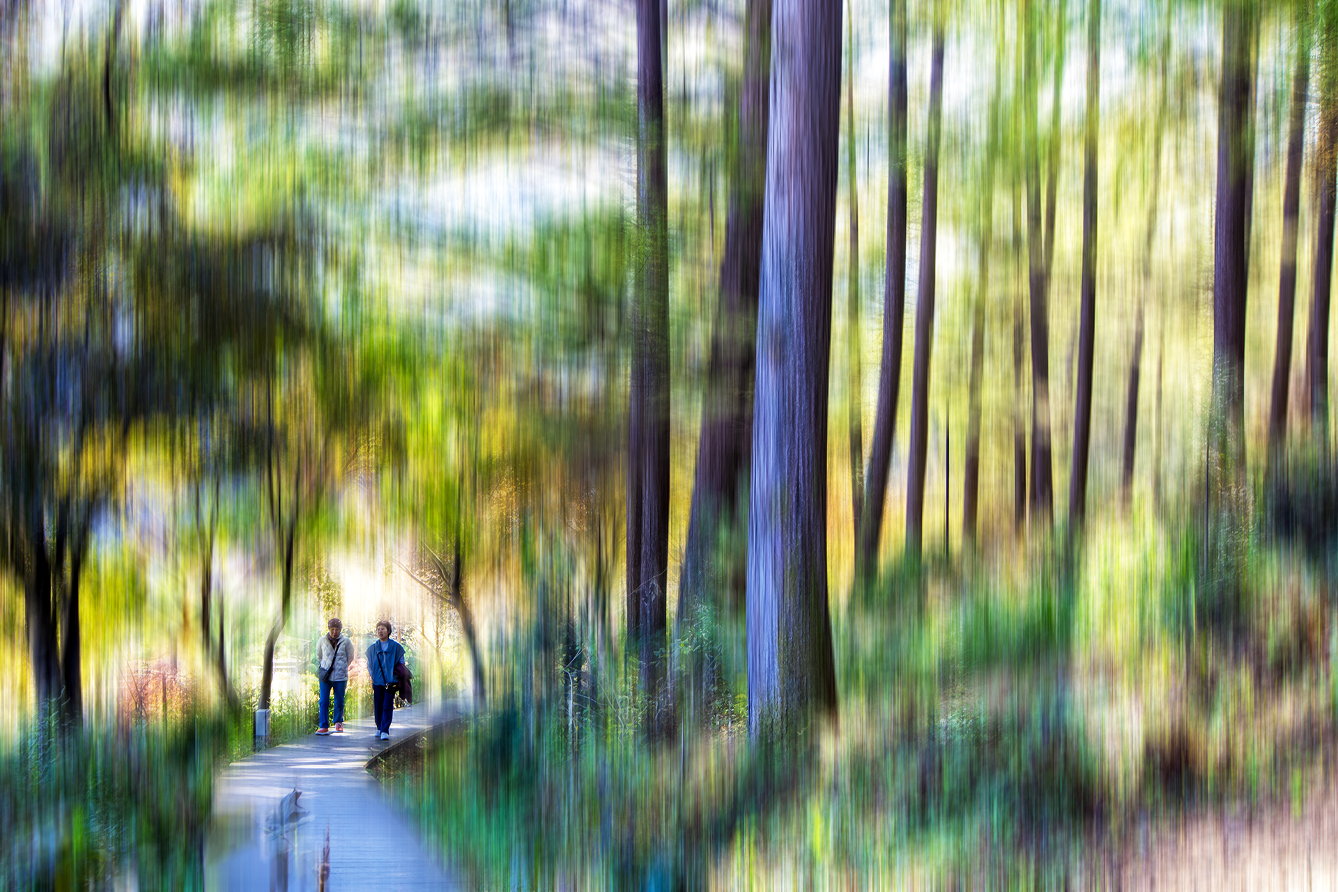 친구와 도란도란 숲속을 산책하는 모습..