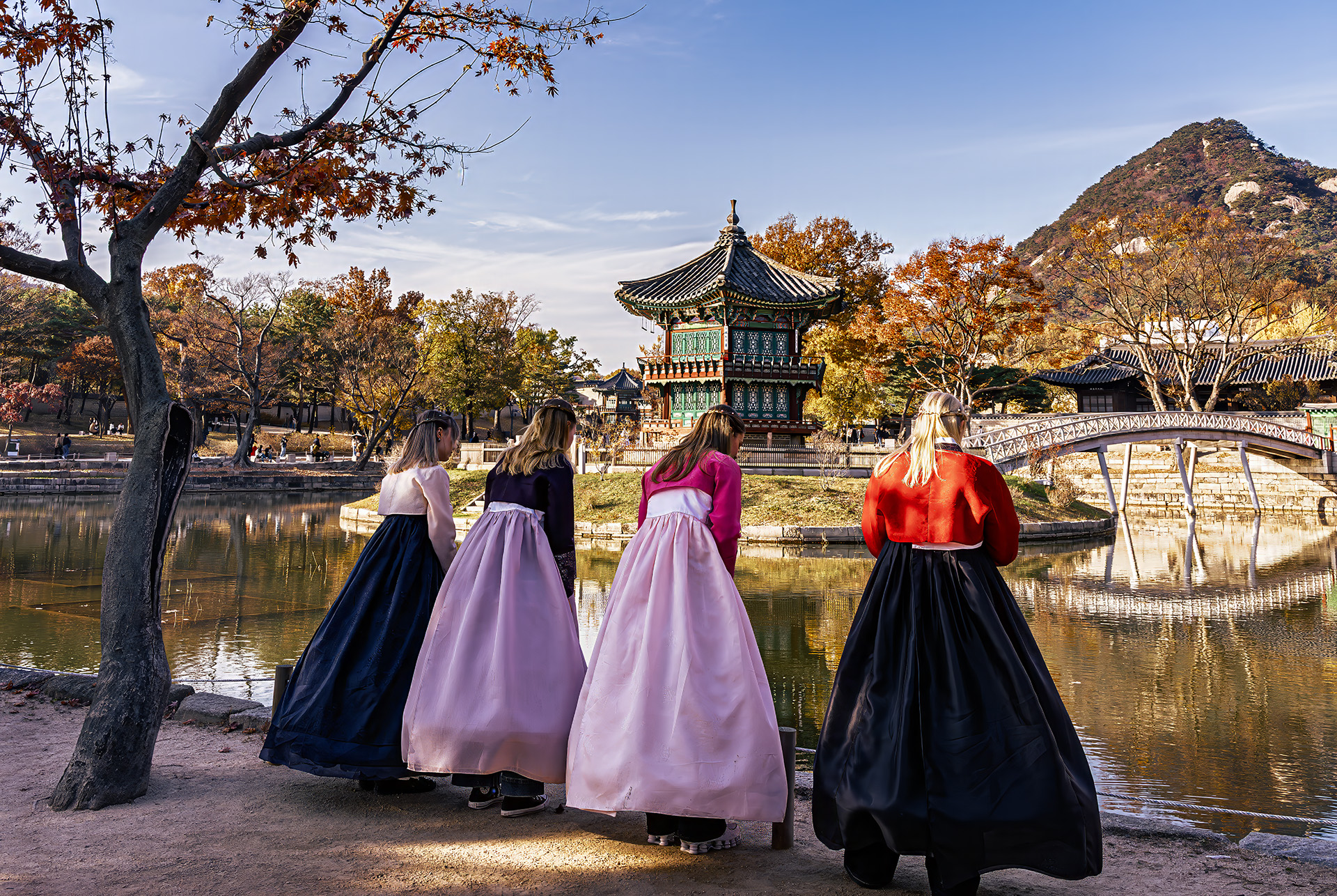 한복이 잘 어울리는 향원정의 만추입니다.