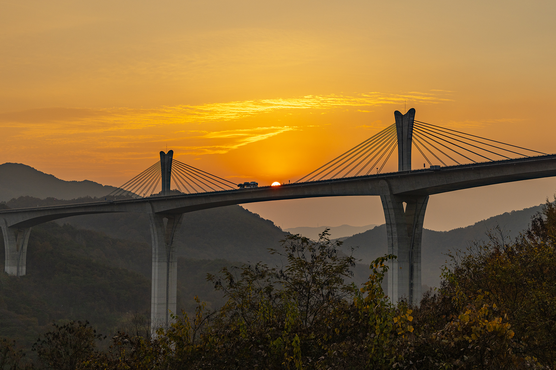 내려오는데 아침해가 대교 위로 살짜기 올라오고 있어