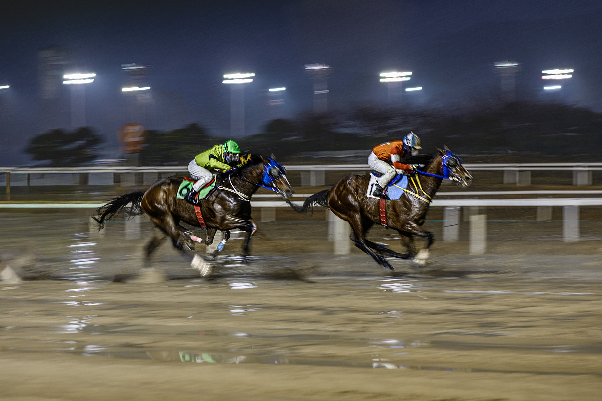 비내리는 야간경기.
