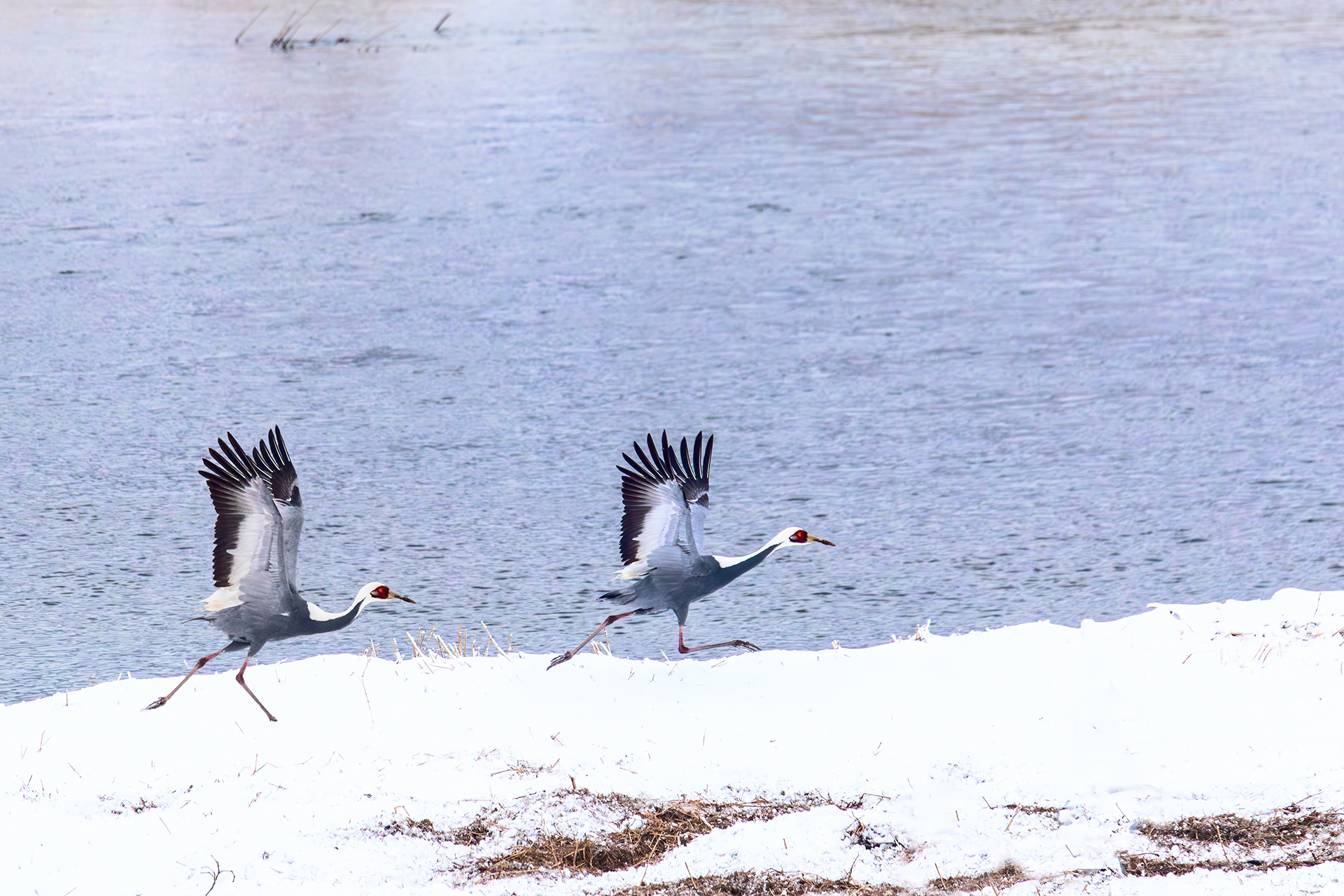 성큼성큼 뛰다가 날아오릅니다.