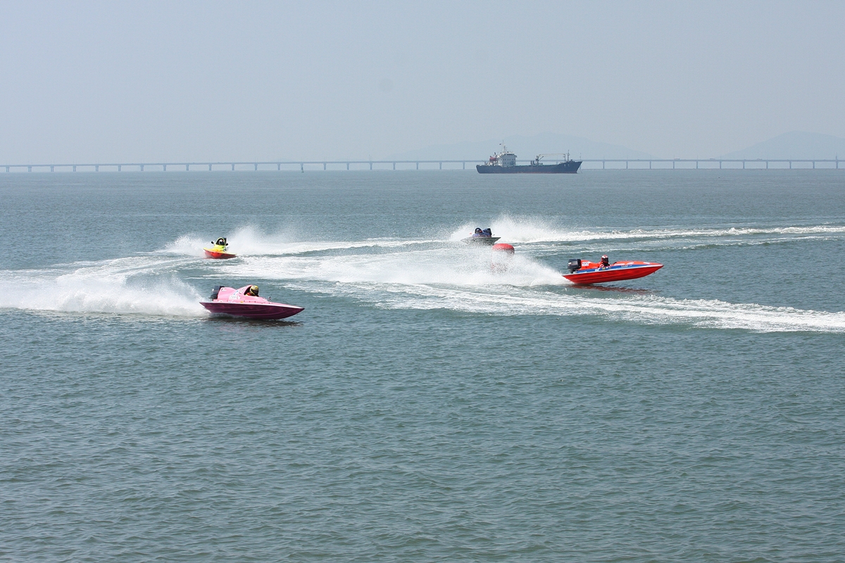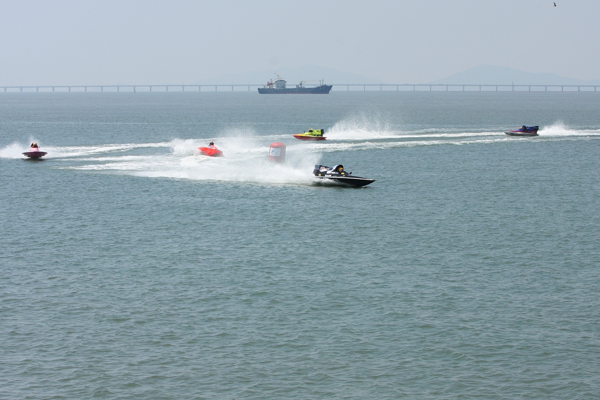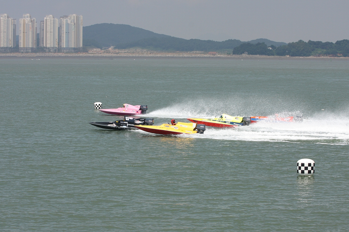 인천국제 모터보트대회에서 날듯이 질주하는 선수들