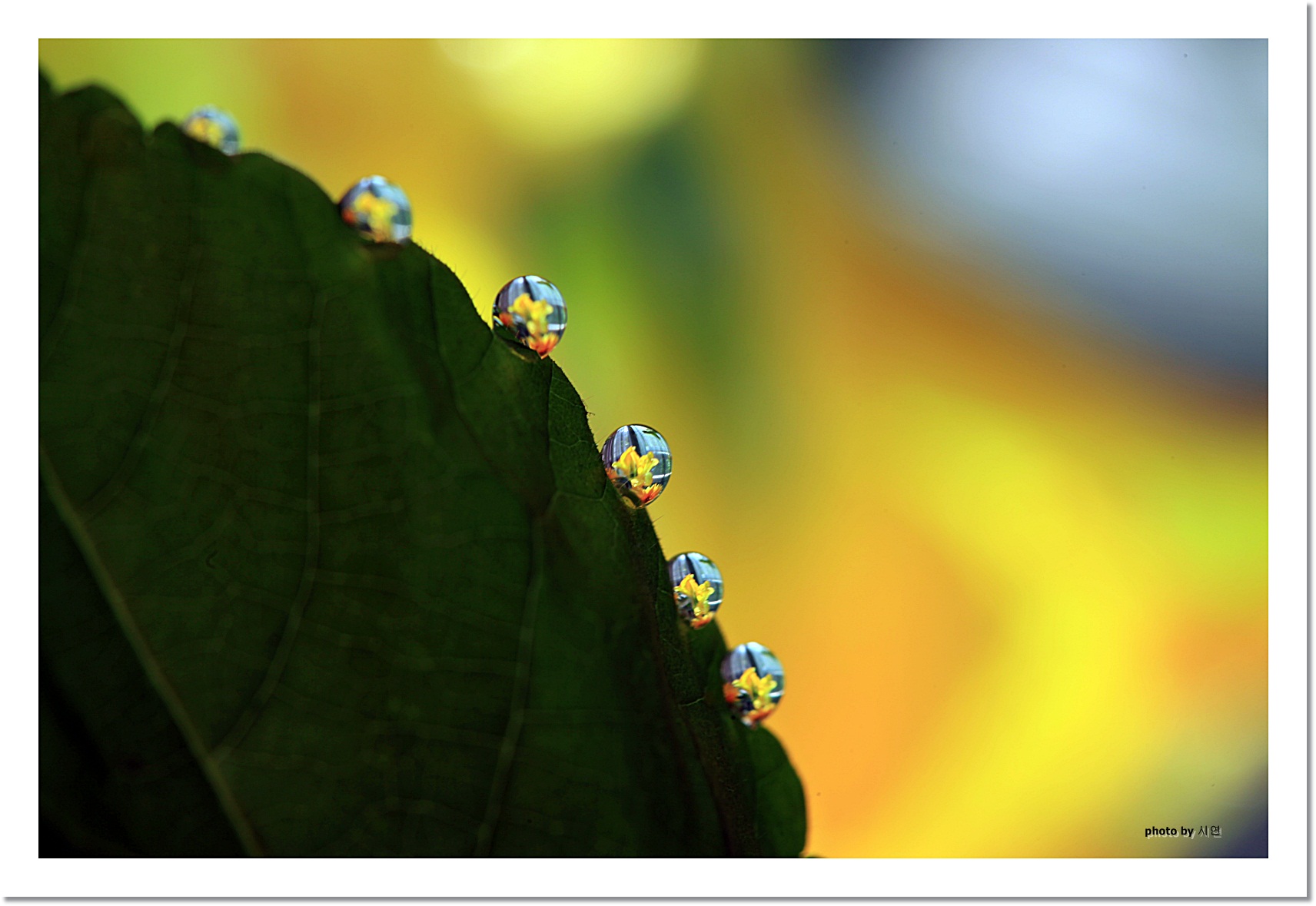아슬아슬하게 줄타기를 하는 물방울들...
