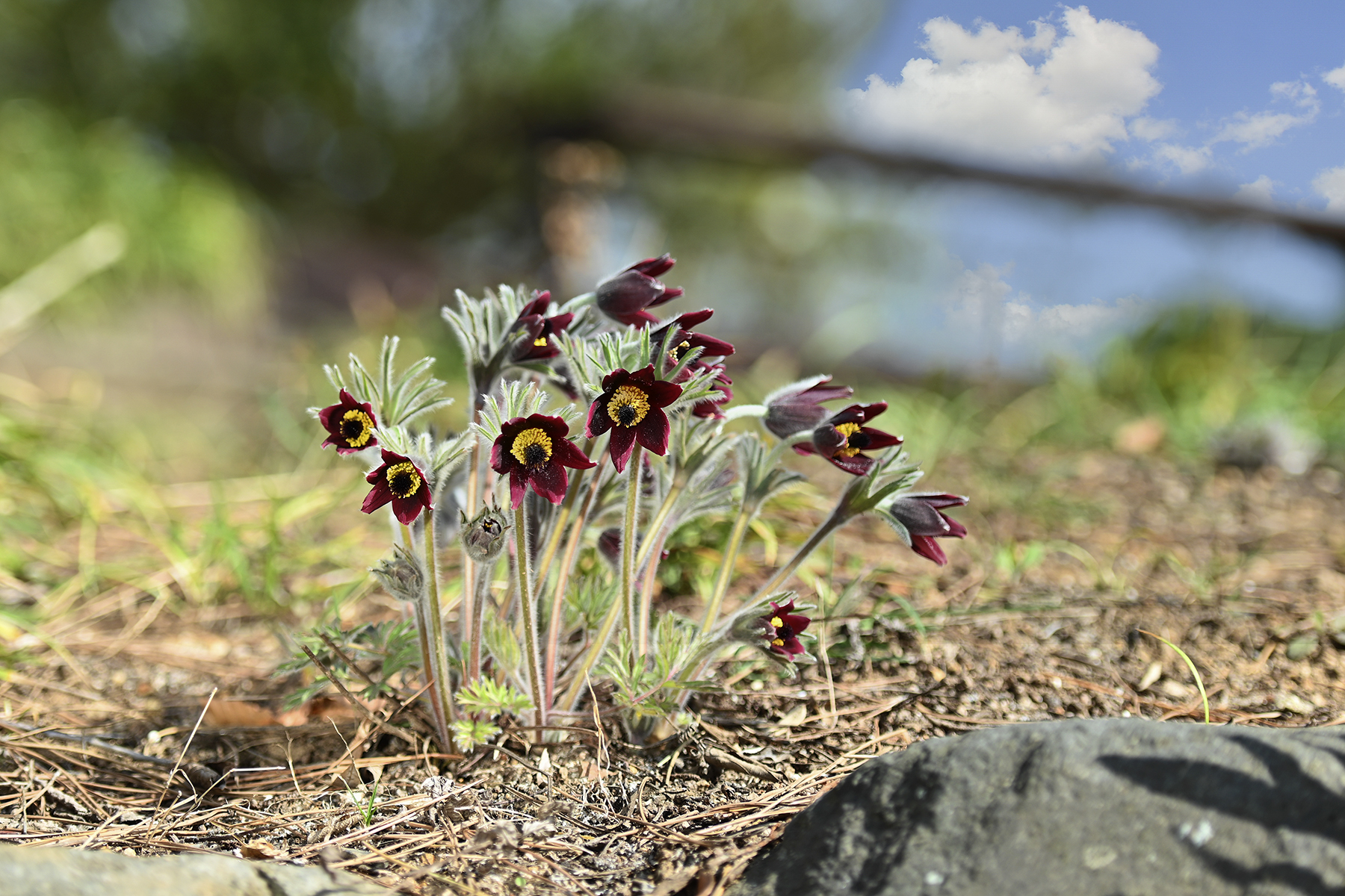 할미꽃은 따뜻하고 양지바른 곳에서 자라 할미꽃과 하늘을 배경으로