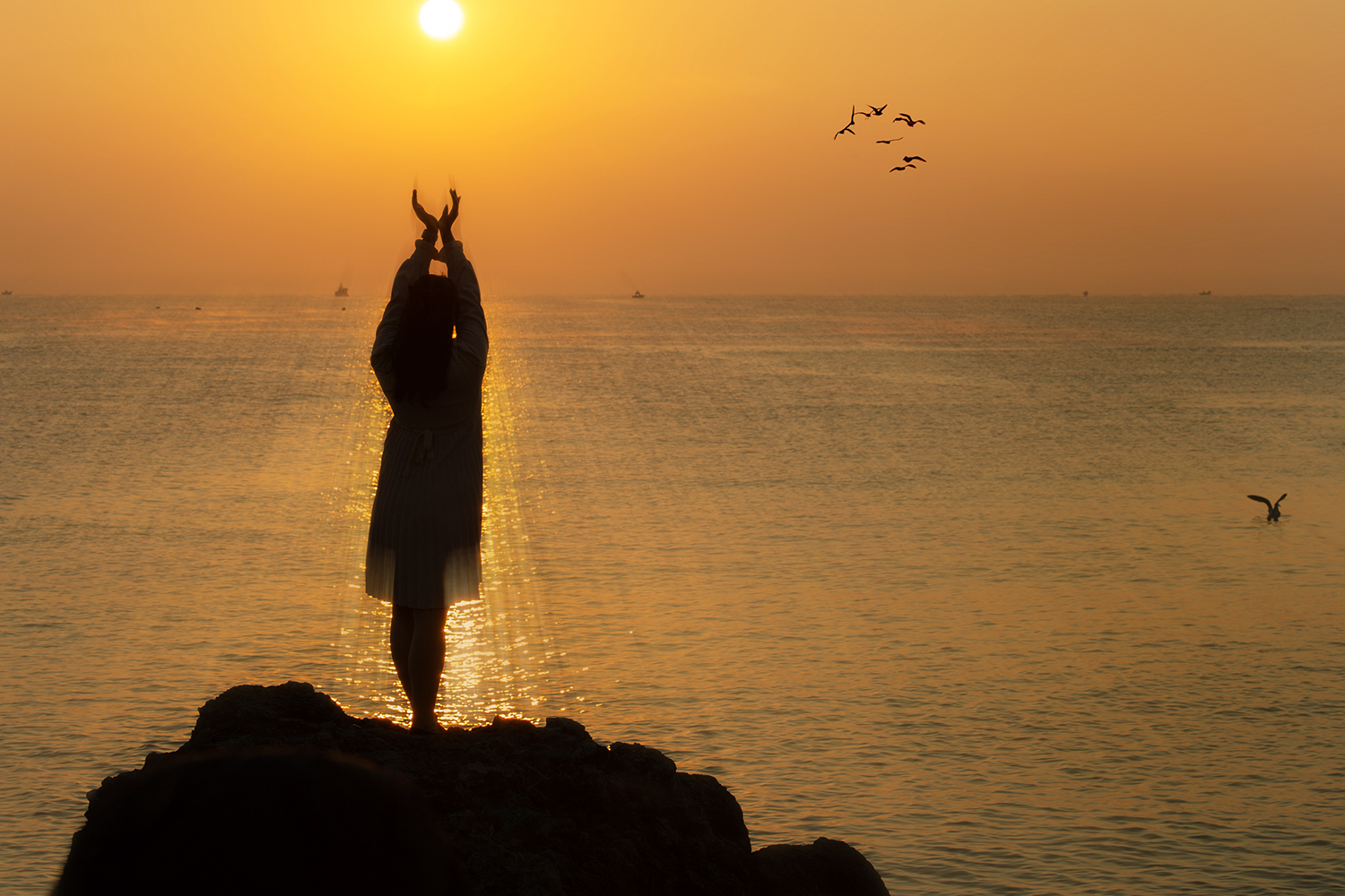울산 강양항 빛갈림이 좋은 날 여인의 해맞이 모습