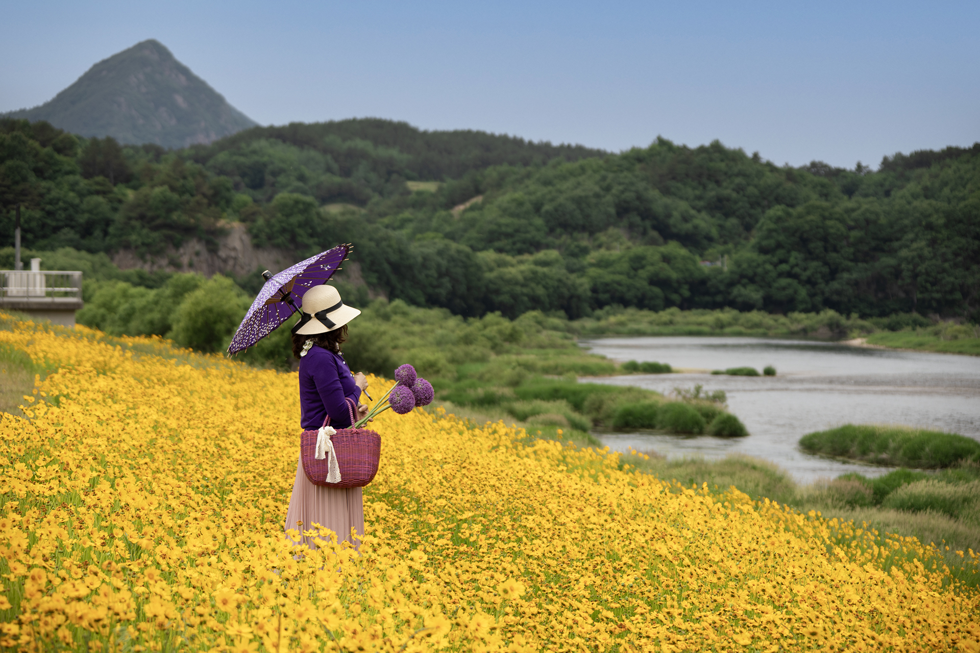 영동 금강변 금계국 꽃밭에서