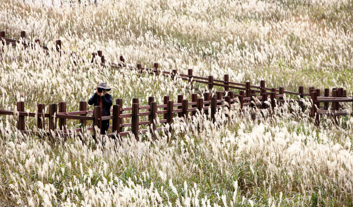 억새의 물결과 여성 슈터의 교감