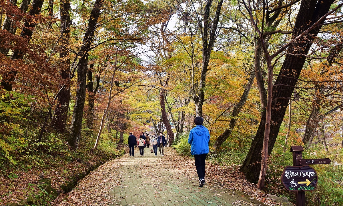 석남사 진입로의 가을도 비로 인하여 이제 내년을 기약 해야 만 할 것 같다.