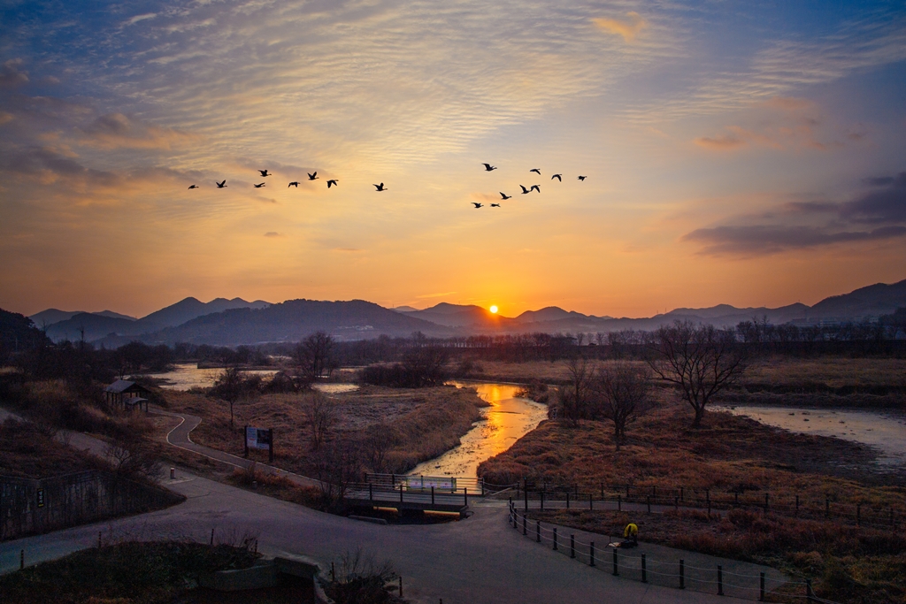 물안개 없는 화포천 그래도 철새들이 있어서 다행