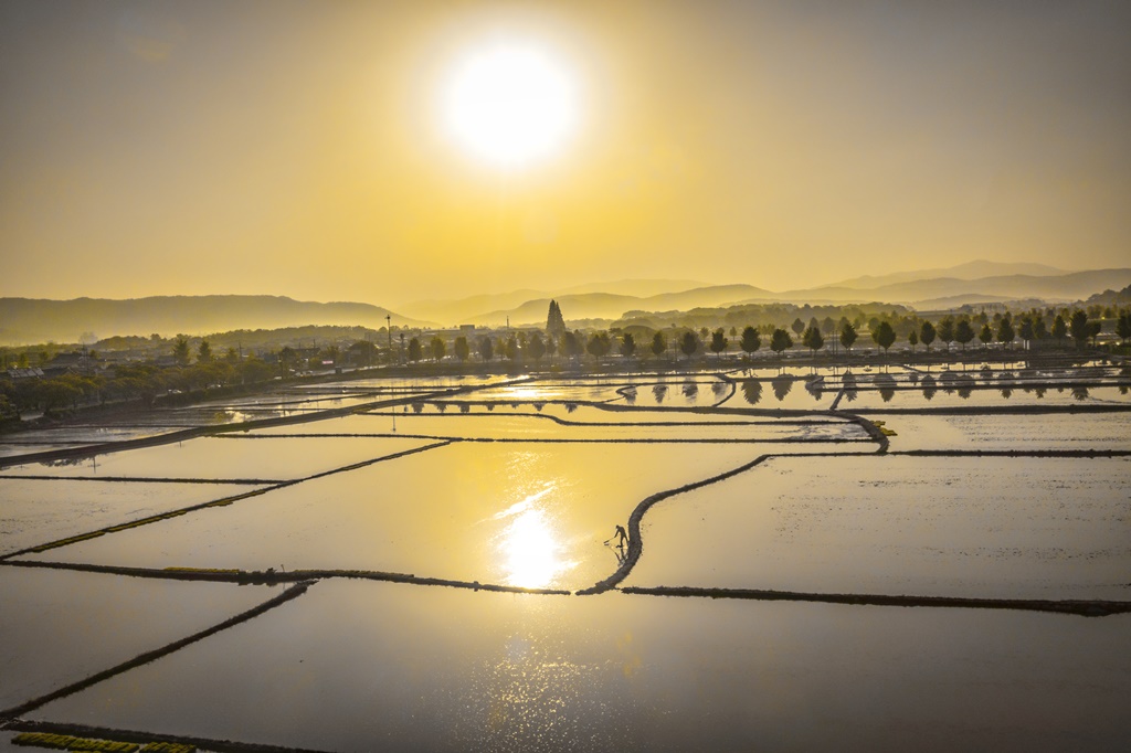 모내기 준비중인 들녁의 아침풍경