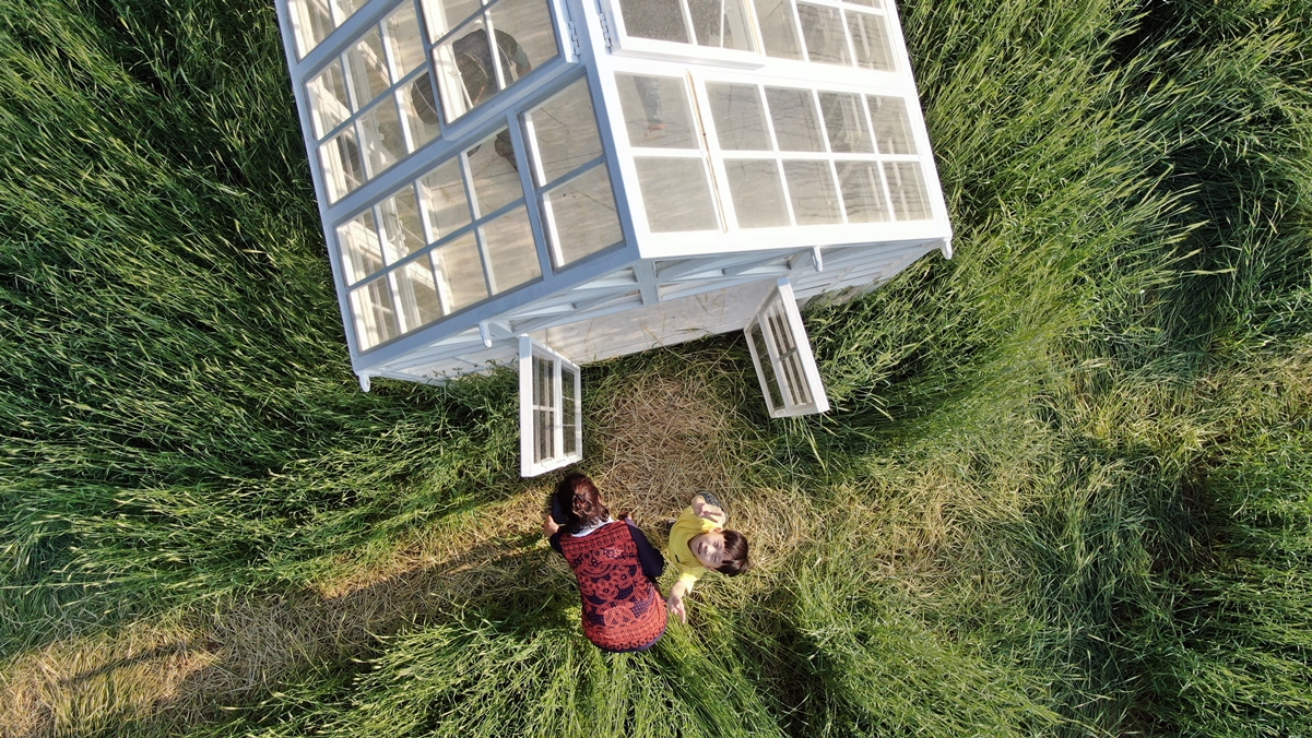 본인의 얼굴을 신기한 듯 바라다 보는 니래의 꿈 소년