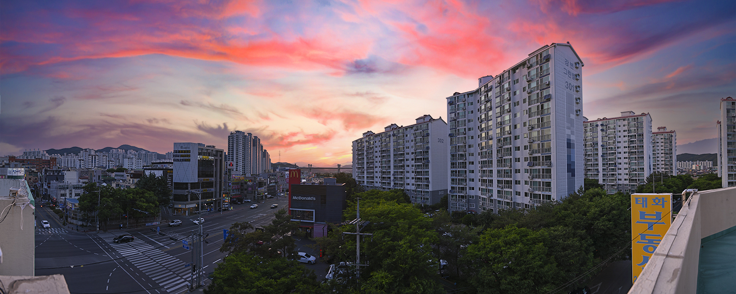 5월의 마직막 날 옥상에서 바라본 일몰 파노라마