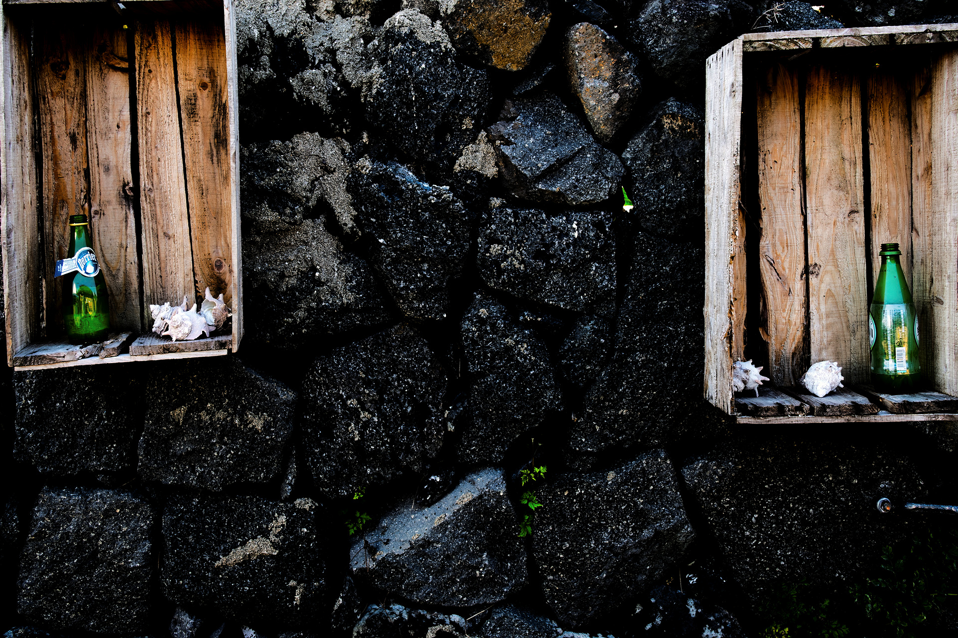 화산석 돌담에 밀감상자로 애주가는 술창고를 만들었습니다