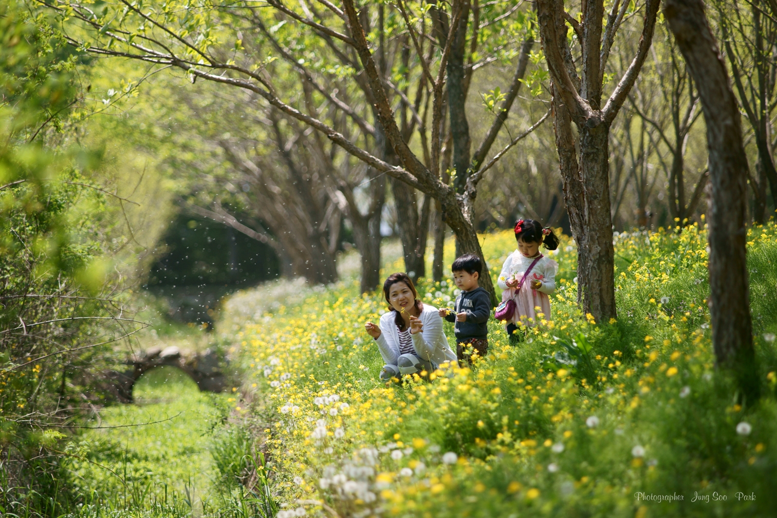 민들레 홀씨 날리면, 만발한 꽃밭에 사랑하는 부인과 아들하나 딸하나