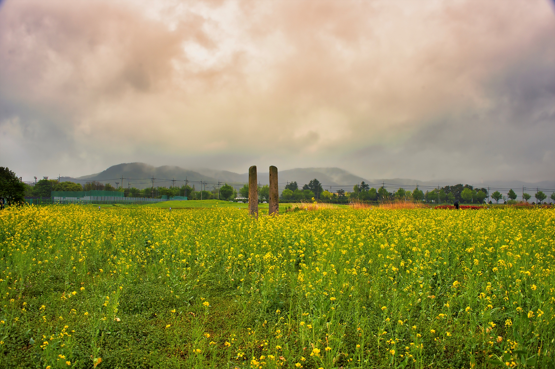 경주 분황사지 유채밭에 노란색으로 물들고
